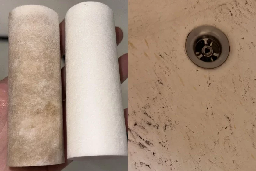 Адна з жыхарак «Мінск-Свету» апублікавала ў Threads фота фільтра для вады, які, паводле яе слоў, стаяў толькі два дні. Дзеля параўнання на фота ёсць і чысты фільтр.