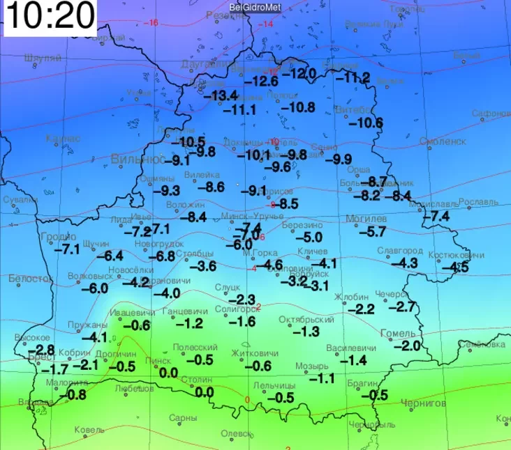 Што праўда, сёння раніцай стала яшчэ халадней. Так, у Верхнядзвінску па стане на 10:20 раніцы было ўжо мінус 13,4°С