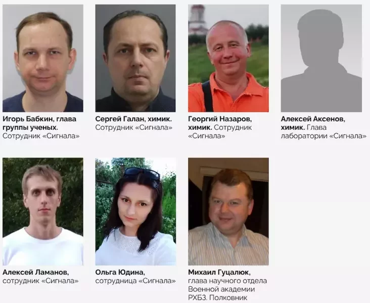 Затое шэсць з сямі суаўтараў — штатныя супрацоўнікі НЦ «Сігнал». Гэта хімікі Ігар Бабкін, Сяргей Галан, Георгій Назараў і Аляксей Аксёнаў, Вольга Юдзіна (вядома, што яна старшы навуковы супрацоўнік 22‑й лабараторыі навукова-вытворчага аддзела), а таксама Аляксей Ламанаў (загадчык 23‑й лабараторыі навукова-вытворчага аддзела).