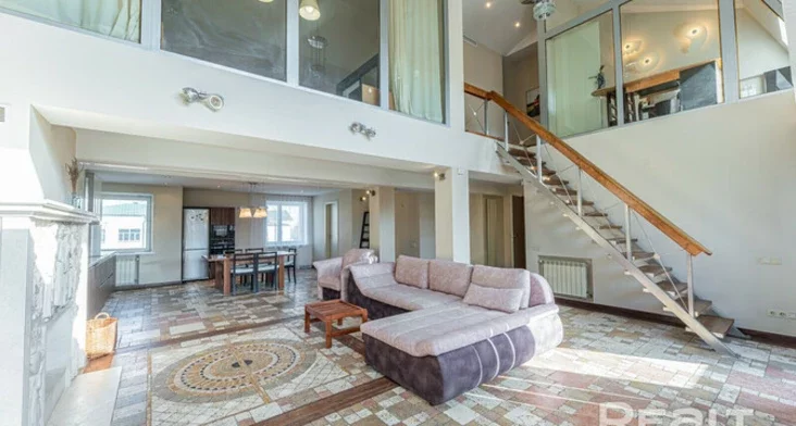 Па інтэр'еры і маштабе гэтая кватэра больш нагадвае сур'ёзны загарадны дом — тут два паверхі, амаль 170 квадратаў плошчы і свой уласны выхад на дах. Агент, які займаецца продажам, жартуе, што гэта варыянт «для багатых і прыгожых».