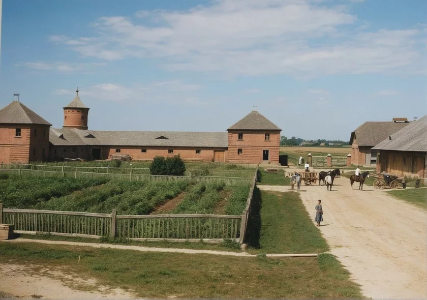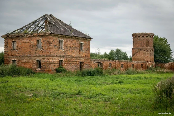 Будынкі зроблены ў характэрным для таго часу «замкавым» стылі: вежы, цагляныя фасады і масіўныя сцены. У склад лота ўваходзяць два капітальныя збудаванні: адно з іх уключае ў сябе ветлячэбніцу, цялятнік, кароўнік, свіран з агароджай агульнай плошчай 778,9 метра, іншае ўяўляе сабой цялятнік і свіран агульнай плошчай 752,9 метра. Зямельны ўчастак памерам 6,3787 га перадаецца ў арэнду на 50 гадоў.