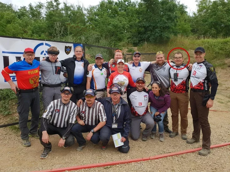 На старонках Сяргея Радкевіча ў сацсетках знаходзіцца фота 2018 года, на якім ён (другі справа) ужо тусаваўся з публікай «Калашнікава» на спаборніцтвах EEO2018 у Чэхіі.
