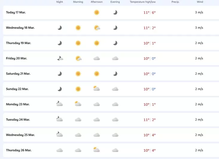 Надвор'е ў Мінску на наступныя дні паводле yr.no