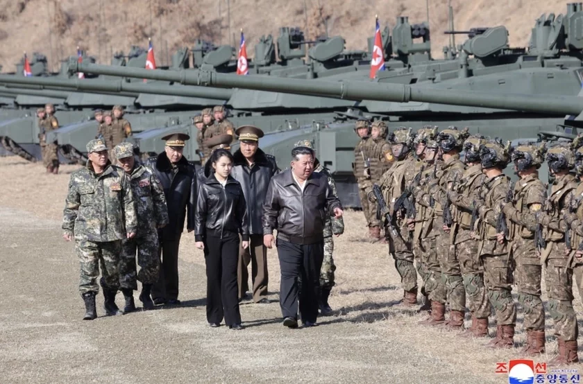 Лідар КНДР Кім Чэн Ын разам з дачкой Кім Чжу Э праехаў на танку падчас тактычных вучэнняў на вучэбнай базе корпуса сталічнай абароны Карэйскай народнай арміі. Пра гэта сведчаць фота, апублікаваныя Карэйскім тэлеграфным агенцтвам.