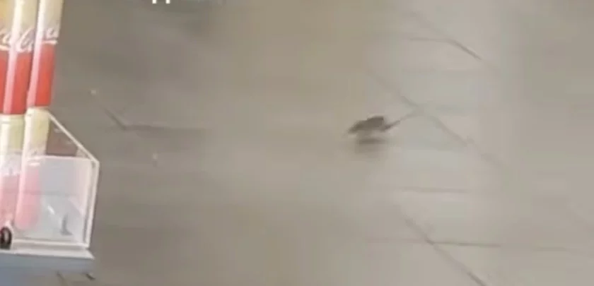 На відэа бачна, як мыш выбягае з аддзела са снэкамі і хаваецца пад вітрынай з газаванымі напоямі. У каментарыях людзі жартуюць, што гэта «новы супрацоўнік» крамы.