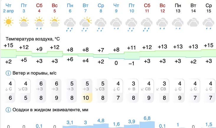 Надвор'е ў Мінску на наступныя два тыдні паводле gismeteo.by