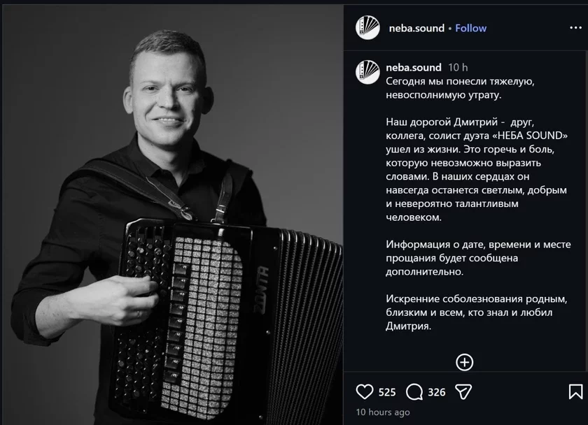 Нечакана памёр 35‑гадовы музыка Дзмітрый Пісанік — баяніст гурта «Неба Sound»