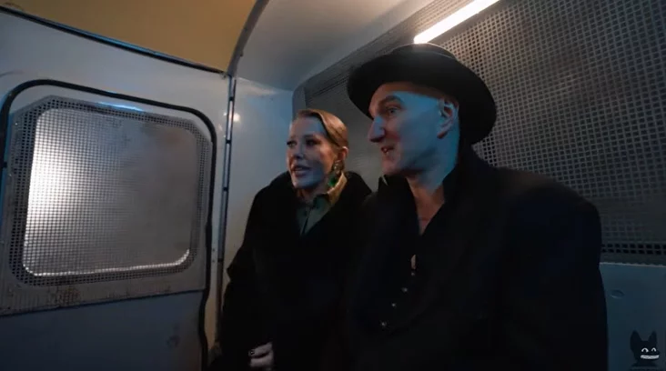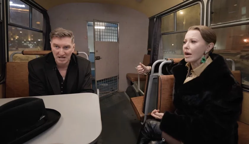 Сабчак і былы кіраўнік RT Красоўскі падчас інтэрв’ю каталіся ў аўтазаку па Маскве. «Спыніце, б**. Я што, у закладніках?»