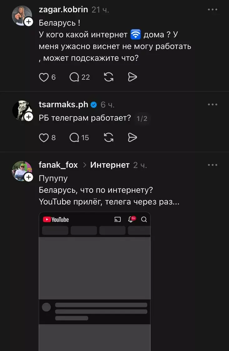 «Ютуб у РБ усё? Не адкрываецца ніфіга».