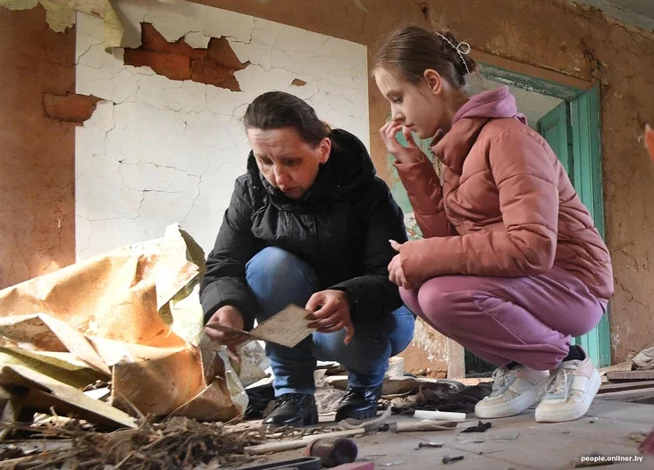 Наталля Купрэйчык са сваёй дачкой Юляй не толькі паказала карэспандэнтам сваё былое жыллё, але нават знайшла ў ім некалькі фотаздымкаў свайго дзяцінства — вялікая ўдача, што ад іх яшчэ нешта засталося.