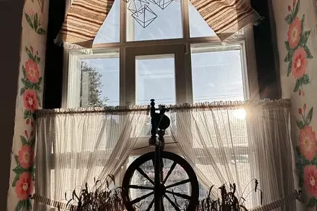 U ščaścieŭskaj balnicy ja čatyry nočy budu načavać u pałacie z takim aknom — jaho vybiła vybuchovaj chvalaj, miedyki zaviesili jaho koŭdraj i zaciahnuli cyrataj znutry. Žyć u takim pamiaškańni — choładna. Navat pry plusavaj tempieratury.