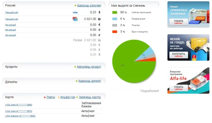 3. Mieniu na biełaruskaj movie ŭ bankamatach i ŭ «Alfa-kliku»