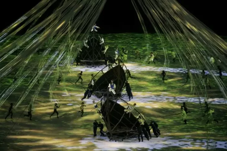 Na stadyjonie «Marakana» sabralisia brazilskija zorki. Naprykład, supiermadel Žyzel Bundchien pradefilavała pad huki chita bosanovy «Girl from Ipanema». Usie brazilskija pop-zorki vystupali na biezhanararnaj asnovie.