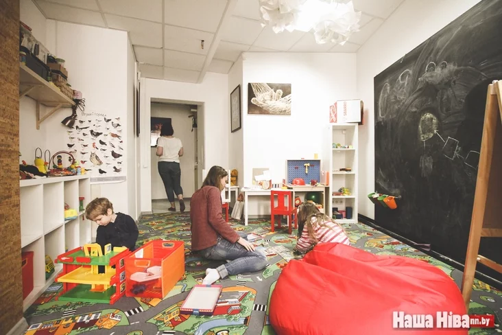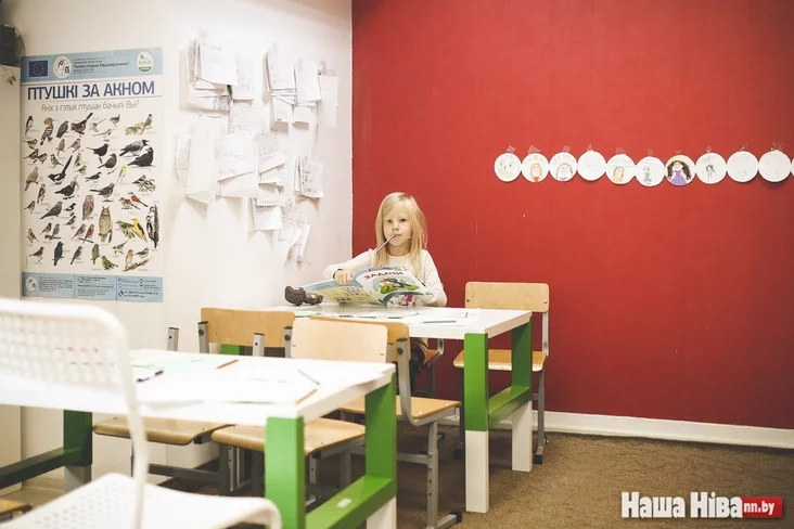 Pakul my razmaŭlajem u dvary, dzieci jeździać pobač na rolikach, ciapier jakraz volny čas. Pierad hetym u ich byŭ kłasičny ŭrok, kali vučni siadzieli za partami, a nastaŭnica stajała la doški. Praŭda, kłas tut nie taki, jak u škole: stałoŭ usiaho niekalki i šmat prastory dla tvorčych zaniatkaŭ. Luboŭ kaža, što prastora — vielmi važny instrumient u navučańni, bo dazvalaje prydumlać niezvyčajnyja formy ŭrokaŭ, kab zacikavić dziaciej pradmietam.