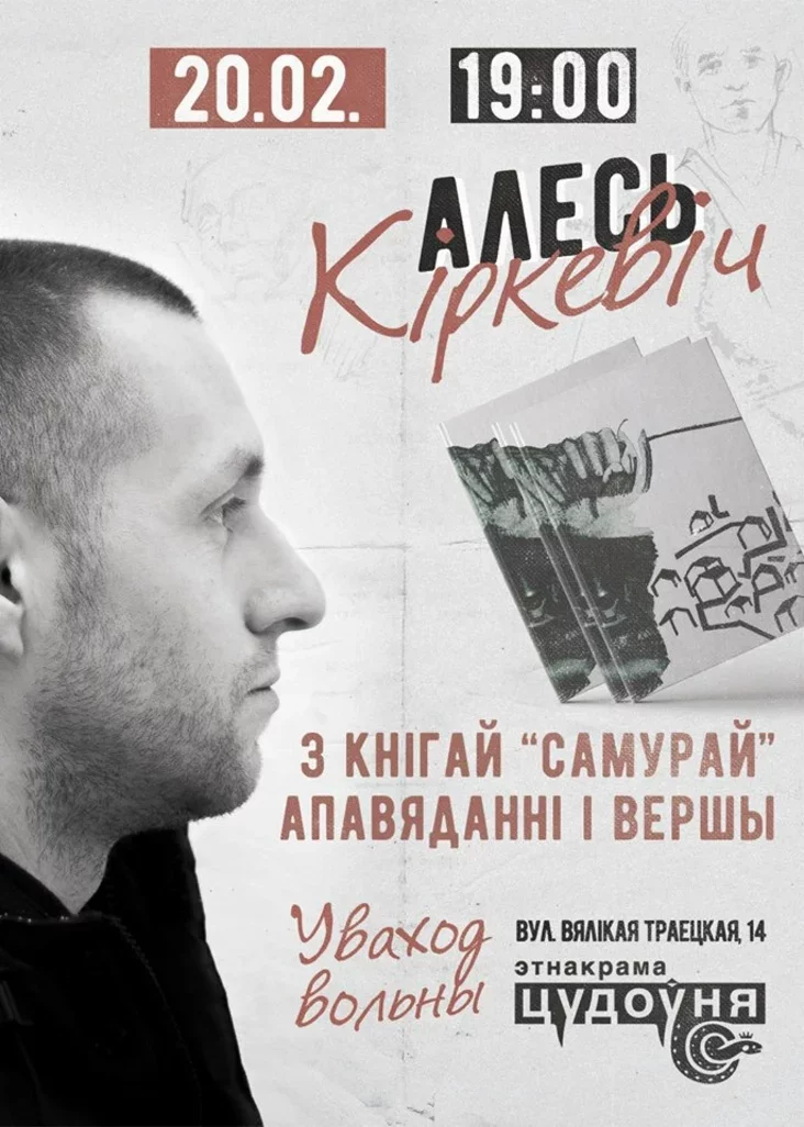 20 lutaha ŭ rodnaj Horadni prezientuje svaju knihu «Samuraj» Aleś Kirkievič. Sustreča z aŭtaram projdzie ŭ etnakramie «Cudoŭnia» (Harodnia, vuł. Vialikaja Trajeckaja, 14), pačatak — a 19-j.