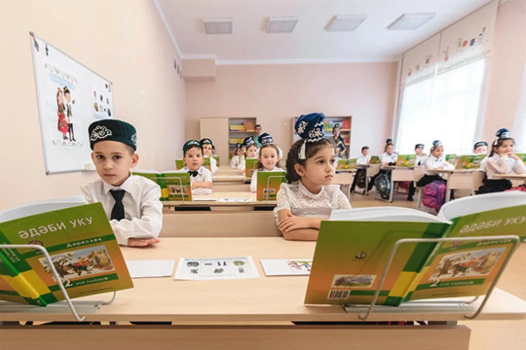 A ŭ tych škołach, dzie vykładańnie adbyvałasia pa-rasiejsku, tatarskaja mova vyvučałasia jak abaviazkovy pradmiet. U Kazani dziejničali tak zvanyja «nacyjanalnyja himnazii», jakija, jak mierkavałasia, stanuć asiarodkam vychavańnia nacyjanalnaj elity.