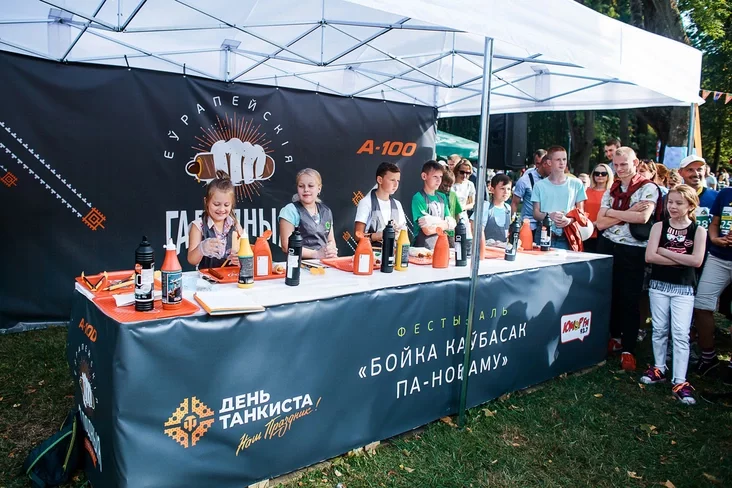 Acanić chot-dohi ad «A-100» biaspłatna minčanie zmahli padčas udziełu ŭ spabornictvach «Jeŭrapiejskich hałodnych hulniaŭ». Pieršych «spartsmienaŭ» u Parku Pieramohi pačali vybirać a 14-j hadzinie. Kožny ź ich zmahaŭsia za pieramohu ŭ adnym sa «smačnych» konkursnych etapaŭ. Padčas kulinarnaha maleńkija biełarusy hatavali frenč-dohi za 20 siekund. U «ramantyčnym» udzielniki, jakija pryjšli sa svajoj paraj, jeli frenč-doh na dvaich. Samym papularnym konkursam, na jaki ŭtvaryłasia čarha, stała malavańnie kietčupam i harčycaj. Z dapamohaj hetych 2 sousaŭ minčukam prapanavali namalavać dziaŭčat ź lehiendarnych pałotnaŭ: Mona Lizu, Žančynu z žamčužnaj zavušnicaj, Frydu Kało de Ryvera i Vienieru Bacičeli.