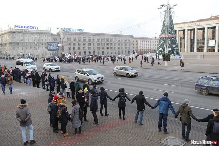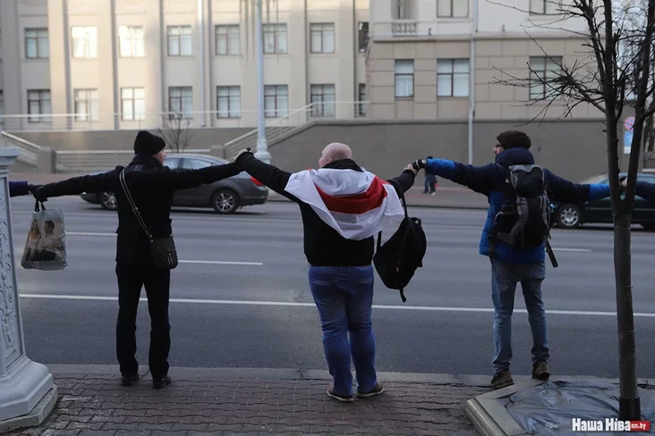 Ludzi razychodziacca: łancuh płanavaŭsia ciaham 15 chvilin — ad 11.30 da 11.45. U akcyi ahułam uziali ŭdzieł niekalki socień čałaviek. Ludzi pryjšli ź ściahami, niekatoryja pryjšli siemjami. Aŭto na praśpiekcie sihnalili, padtrymlivajučy ŭdzielnikaŭ łancuha.