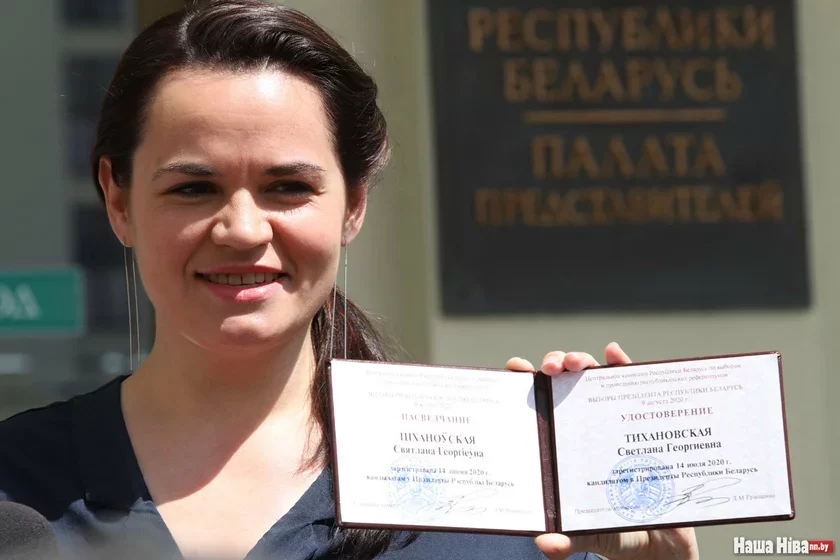 Centrvybarkam pa prapanovie Lidzii Jarmošynaj zarehistravaŭ Śviatłanu Cichanoŭskuju kandydatam u prezidenty Biełarusi.