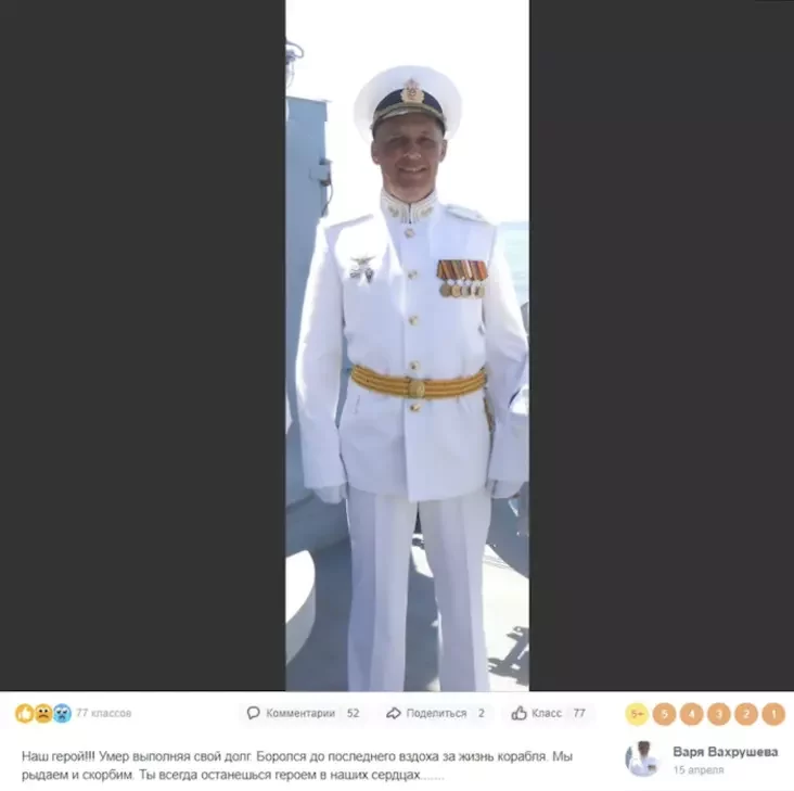 Raniej žurnalisty prajekta «Schiemy» «Radyjo Svaboda» znajšli post u «Adnakłaśnikach», pryśviečany hibieli 41-hadovaha mičmana Ivana Vachrušava. Jon słužyŭ u bajavoj čaści numar piać — heta značyć elektramiechanikam.