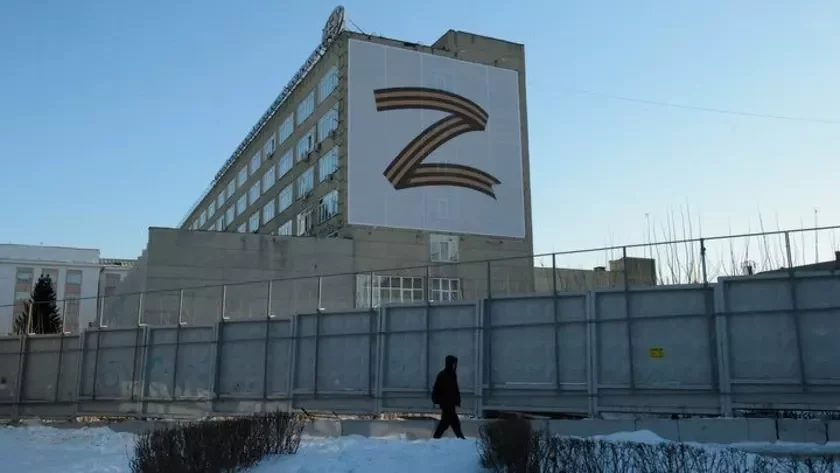 Hieorhijeŭskaja stužka i simvały Z i V pryraŭnoŭvajucca da nacysckich i kamunistyčnych simvałaŭ.