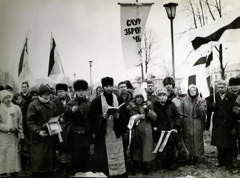 «Siońnia — dzień, jaki amal nie ŭzhadvajuć u padručnikach historyi. Tolki 20—30 hadoŭ tamu šyrokamu kołu biełarusaŭ stała viadoma pra Słucki zbrojny čyn. Heta važnaja častka našaj historyi. U 1920 hodzie ŭ Słucku ŭźniali paŭstańnie: biełarusy chacieli abaranić svajo prava žyć u Biełaruskaj Narodnaj Respublicy — u Biełarusi, volnaj ad luboj inšaj ułady, akramia biełaruskaj.