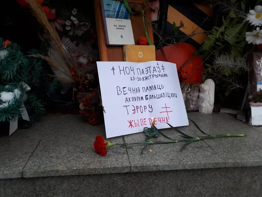 Nahadajem, chłopca zatrymali ŭčora ŭ Iaškar-Ale paśla ŭskładańnia kvietak da miemaryjała achviaram palityčnych represij — jon raźmiaściŭ u adnoj ź niš miemaryjała płakat: «Noč paetaŭ. 29-30 kastryčnika. Viečnaja pamiać achviaram balšavickaha teroru. Žyvie viečna».