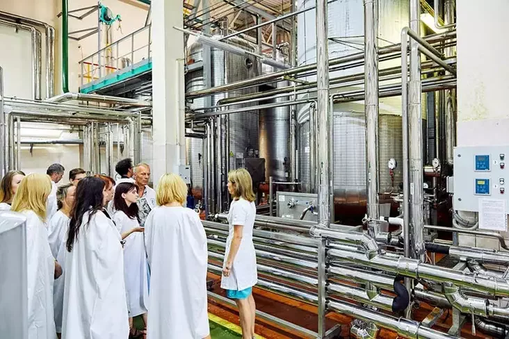 Pachod pa zavodzie achopić praktyčna ŭsie etapy vytvorčaści. Hrupa naviedaje vino materyjalny cech i adździeł šampanizacyi. Ubačyć možna i praces raźlivu i afarmleńnia hatovaha praduktu, piša Tochka.by.