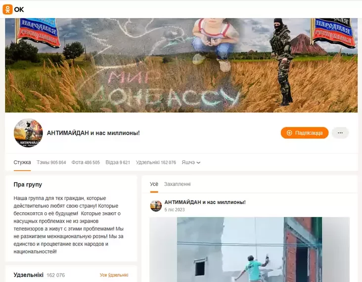 Na staronku ŭ «Adnakłaśnikach», jakaja nazyvajecca «Antymajdan nas miljony» padpisany bolš za 160 tysiač čałaviek.