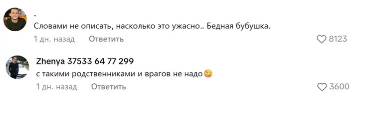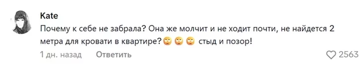 «Čamu da siabie nie zabrała? Jana ž maŭčyć i nie chodzić amal, nie znojdziecca 2 mietry dla łožka ŭ kvatery? Soram i hańba», — piša adzin z kamientataraŭ (2,5 tysiačy łajkaŭ).