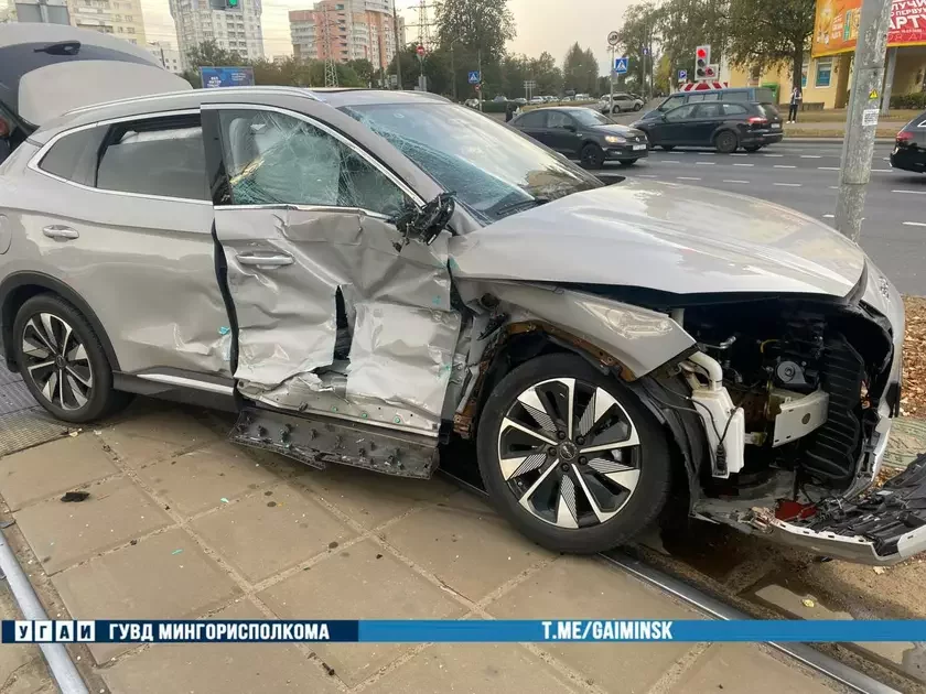 U vyniku tramvaj, što ruchaŭsia ŭ spadarožnym napramku, prataraniŭ jaho, paviedamlaje DAI.