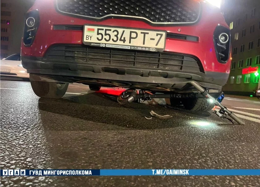 Chłopčyk na samakacie pierasiakaŭ prajeznuju častku na zialonaje, adnak nie źlez ź jaho i sutyknuŭsia z Kia, jaki zbočvaŭ naleva.