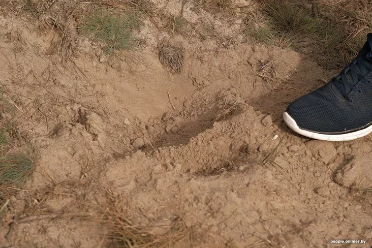Ale Juryj adrazu pakazvaje na ŭtrambavanuju ziamlu — spačatku ŭ adnym miescy, potym u inšym. Pavodle jaho, mienavita tut čarapachi adkładajuć jajki. Mužčyna zaŭvažyŭ, što mnohija samki z hodu ŭ hod robiać heta ŭ adnym i tym ža miescy.