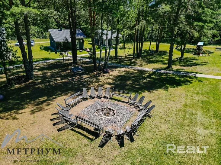 Viadoma, praduhledzieli ŭłaśniki i zonu BBQ. Jana abstalavanaja zašklonaj altankaj na 40 čałaviek, manhałam, kazanom, rašotkami i šampurami.