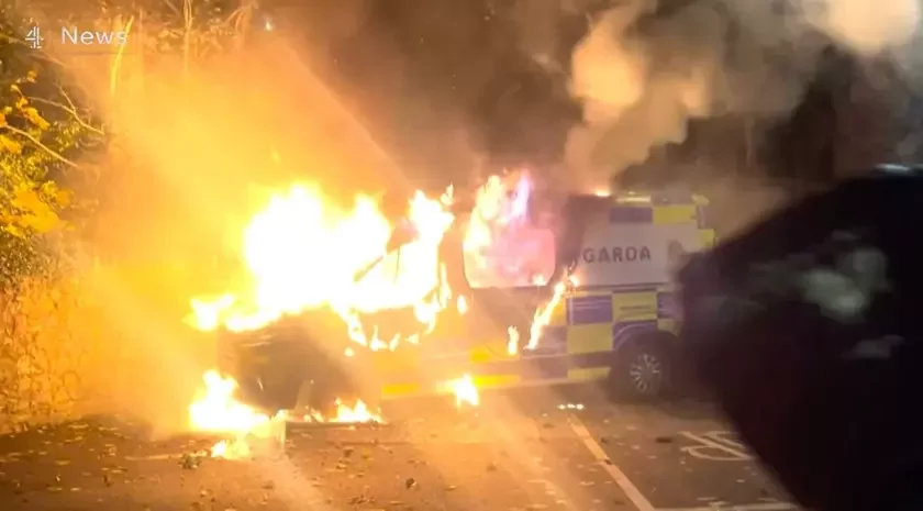 Pratesty ŭ Dublinie. Skrynšot ź videa: Channel4 / YouTube