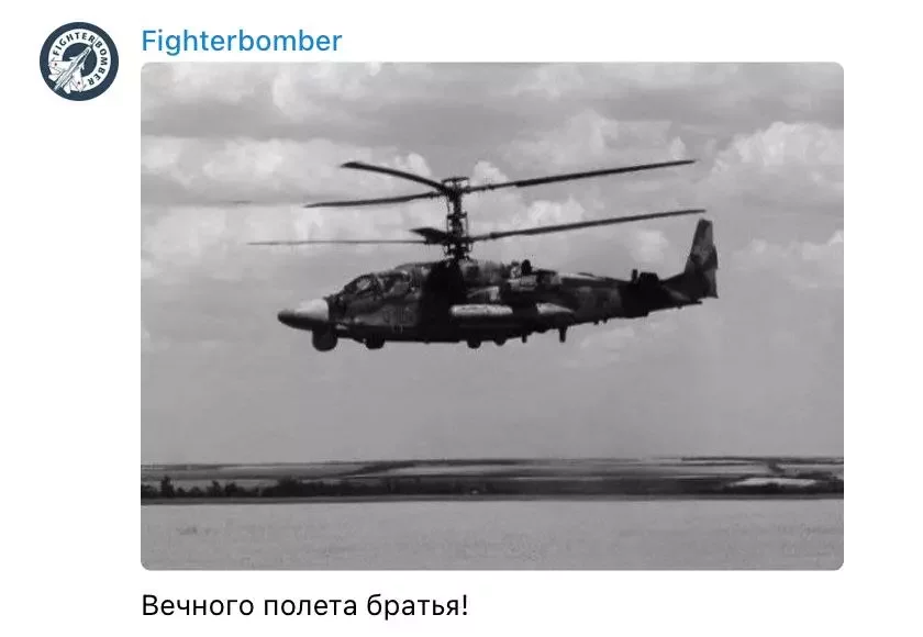 «Jašče adzin šturmavy viertalot Ka-52 byŭ źbity», — paviedamlaje telehram-kanał «Karty i strełački».