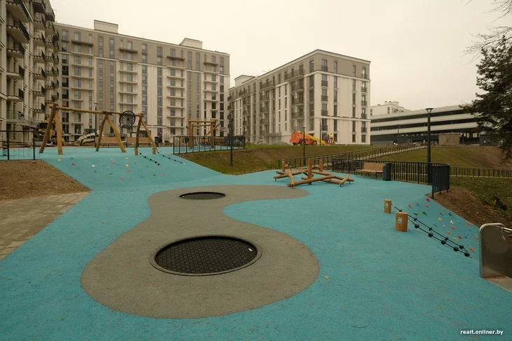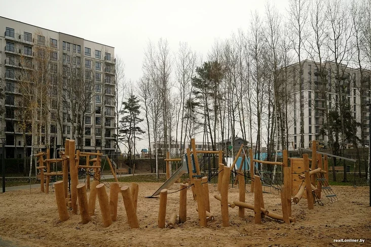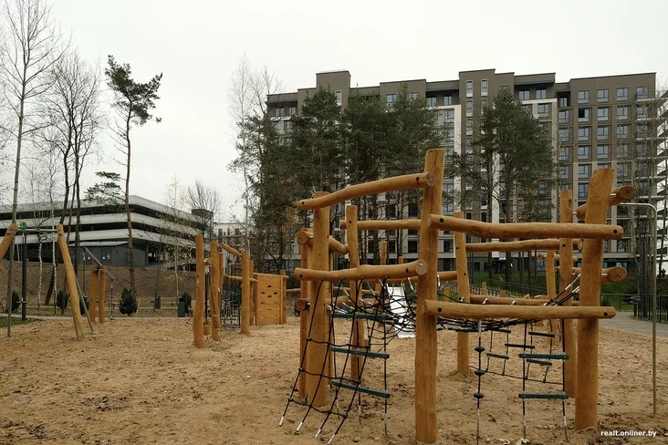Na terytoryi ŭładkavanyja leśvicy, pandusy, darožki, aśviatleńnie, zony adpačynku i niekalki hulniavych placovak. U centralnaj zonie ŭstalavali kanatnuju darohu, šyrokuju horku, batuty. Usio abstalavańnie vykananaje ŭ ekastyli.