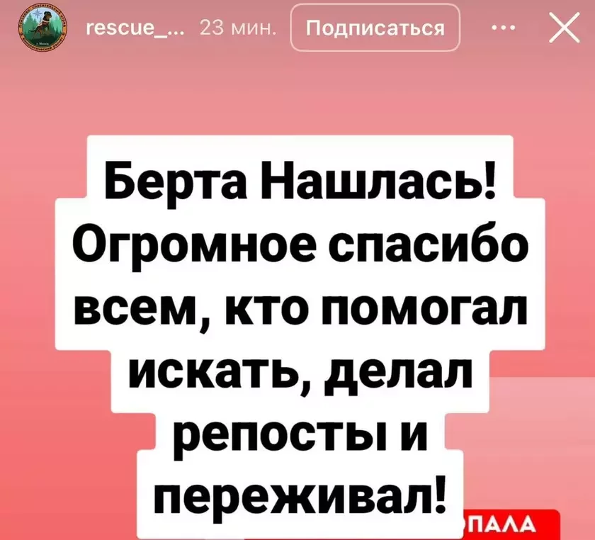 Viadoma, što Bierta pajšła na pach čałavieka i nie viarnułasia. Siońnia stała viadoma, što jana znajšłasia.