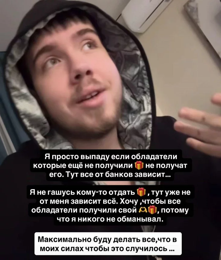 Michaił pryznaje, što nie ŭsie pieramožcy atrymali svaje pryzy (havorka idzie pra ajfony, mašyny i hrošy) — ale śćviardžaje, što nie moža ich uručyć ludziam vyklučna praz toje, što siłaviki zabłakiravali jaho rachunki i zabrali niekatoryja rečy.