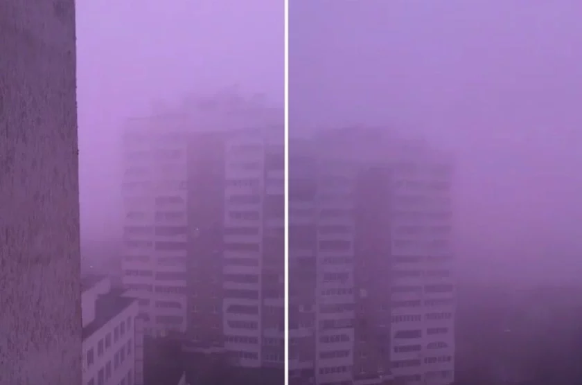 Napiaredadni ranica ŭ Salihorsku akazałasia pa-sapraŭdnamu niezvyčajnaj. Žychary horada stali masava dzialicca ŭ sacsietkach fatahrafijami i videa niezvyčajnaj atmaśfiernaj źjavy — hustoha ružovaha tumanu, što achutaŭ vulicy, piša «Minskaja praŭda».