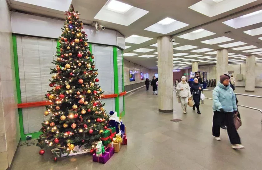 Na stancyi minskaha mietro źjaviłasia navahodniaja jełka FOTAFAKT