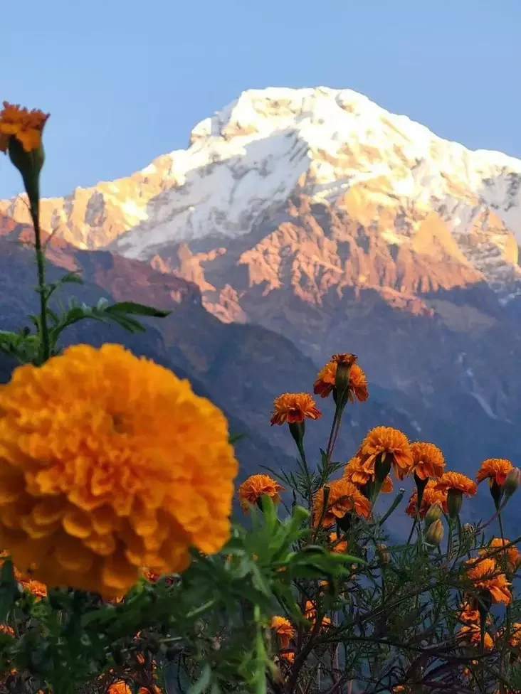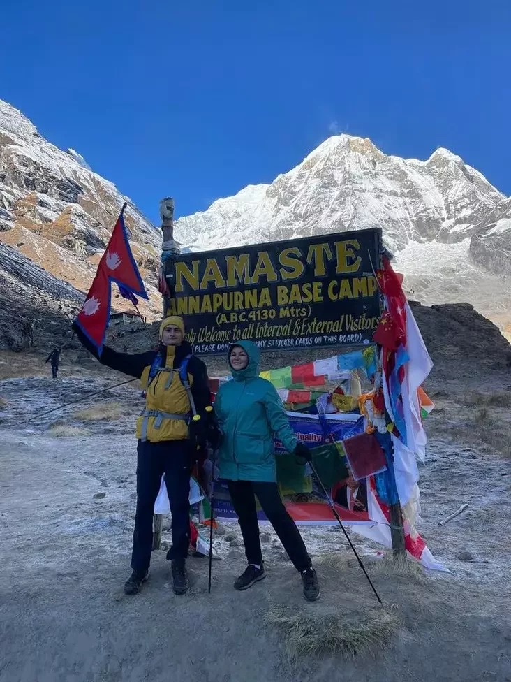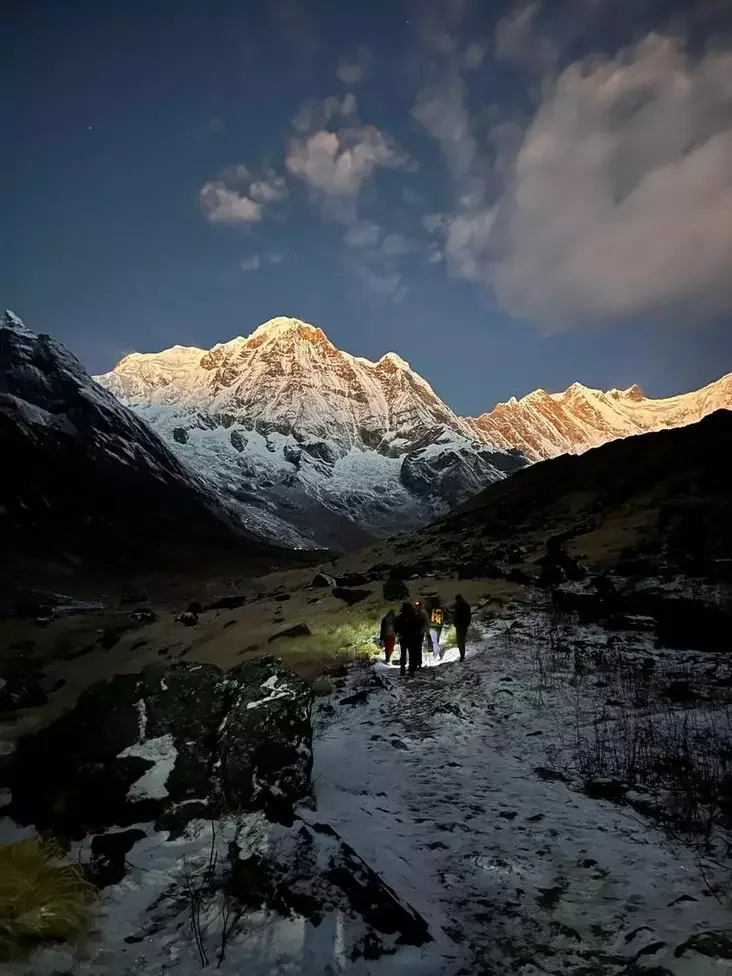 Bazavy łahier, kudy nakiroŭvajucca turysty ŭ trekinhavych pachodach Anapurny, znachodzicca na vyšyni 4130 mietraŭ. Padjom tudy doŭžyŭsia niekalki dzion. Ja pačała jaho ŭ topiku i šortach, a skončyła na vyšyni bolš za 4000, u śniahach, u niepradzimanym łyžnym kaściumie.
