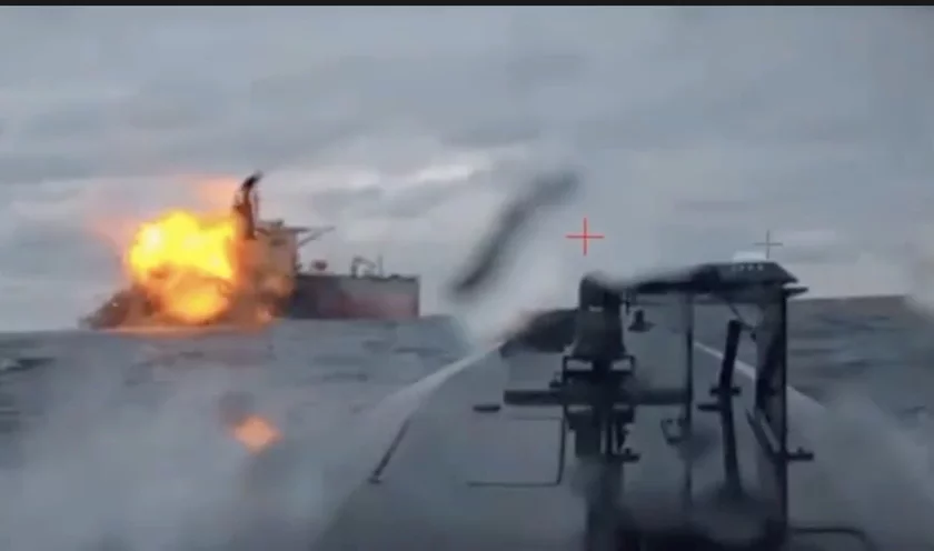 Tankier «Kajras», atakavany dronami USU, sieŭ na miel la ŭźbiarežža Bałharyi