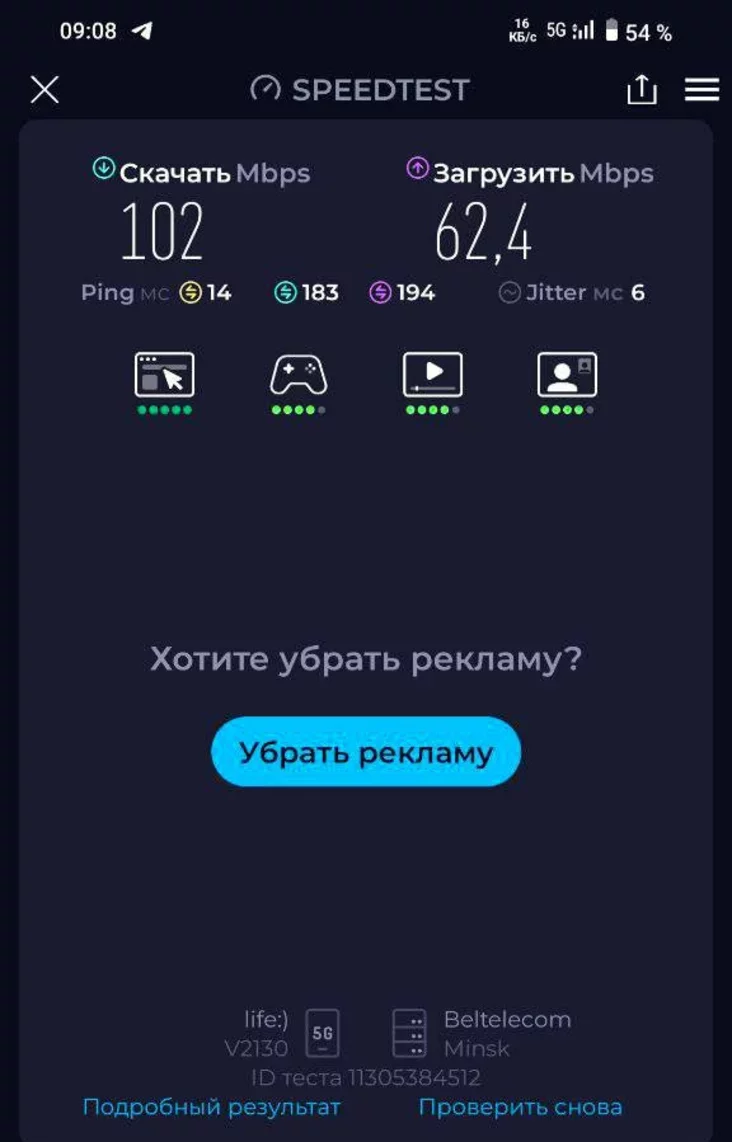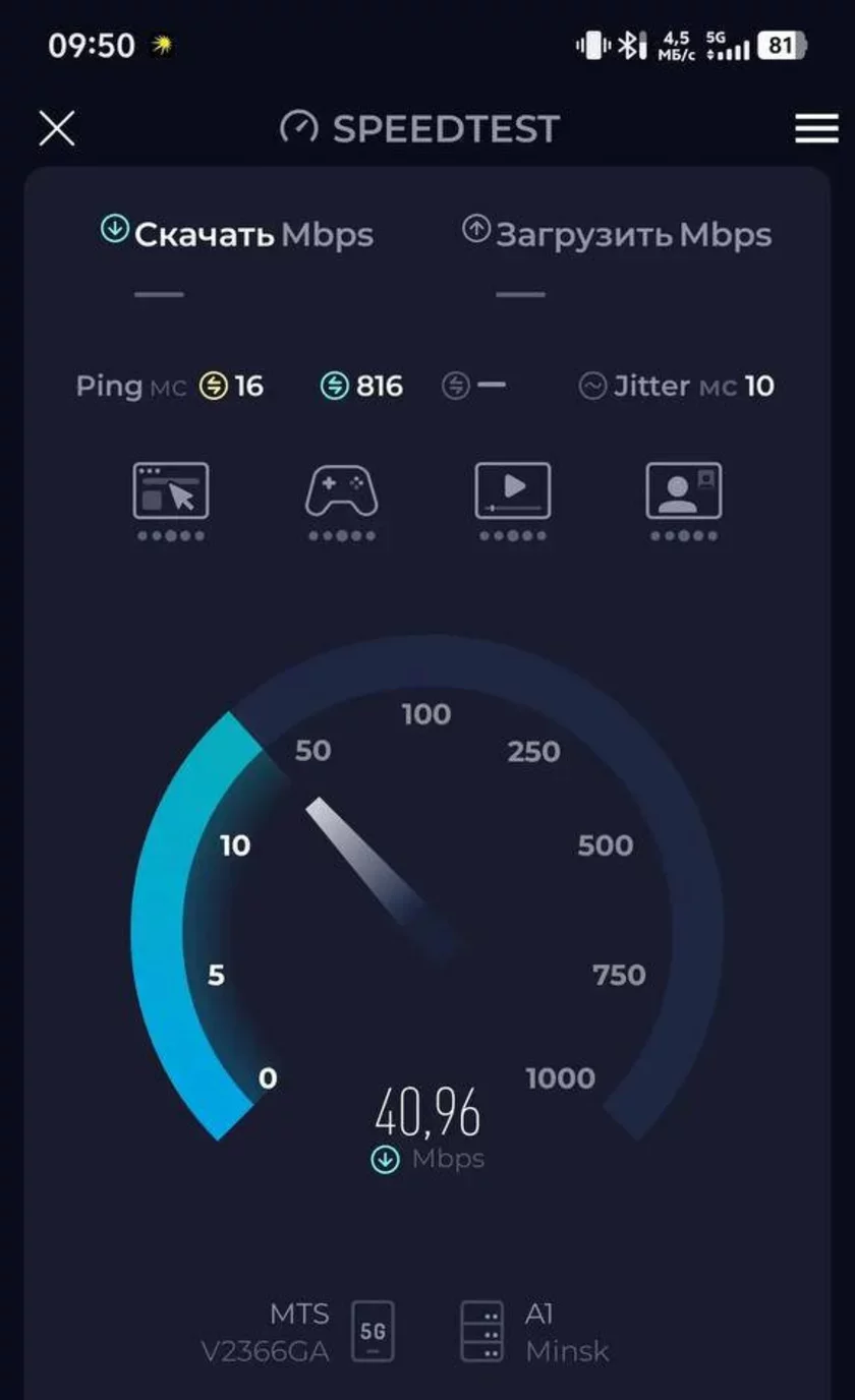 Jak piša Blizko.by, zony 5G zaŭvažanyja va ŭsich troch apierataraŭ mabilnaj suviazi (A1, MTS, Life), karystalniki pačali vykładvać skrynšoty svaich telefonaŭ z zamieram chutkaści. Chutkaści hetyja, treba skazać, miescami nie nadta adroźnivajucca ad tych, jakija mohuć vydavać sietki papiaredniaha pakaleńnia — 4G.
