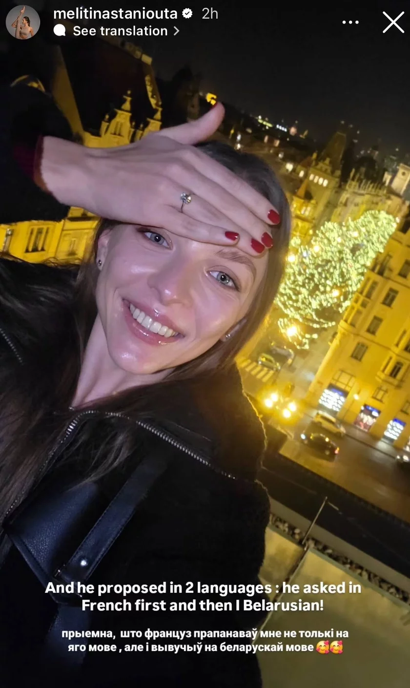 «I jon zrabiŭ prapanovu na dźviuch movach: spačatku spytaŭ pa-francuzsku, a potym — pa-biełarusku! Pryjemna, što francuz zrabiŭ prapanovu mnie nie tolki na svajoj movie, ale i vyvučyŭ na biełaruskaj movie», — dadała jana.