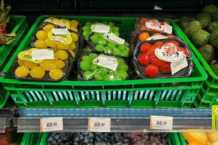 Heta płady zialonaha, žoŭtaha i čyrvonaha koleraŭ. Košt za kiłahram — 69,99 rubla, piša Onliner.by.