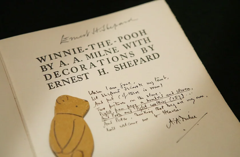 Kniha «Vini-Puch», u jakoj raspaviadajecca pra vydumanyja pryhody syna Miłna Krystafiera Robina i jaho cacačnaha miadźviedzia, była apublikavanaja ŭ 1926 hodzie, a jaje praciah «Dom na Puchavaj palanie» — u 1928 hodzie.