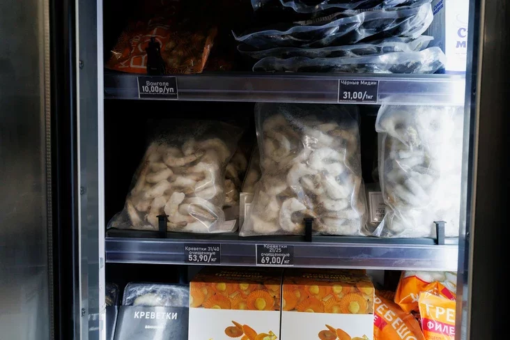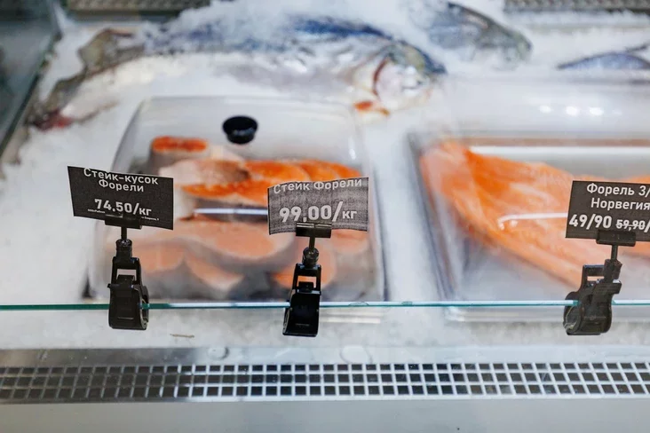 Ceny takija: achałodžany narviežski łasoś — 49,9 rubla za kh, hałandski sieladziec «Maćje» — 41,9, sinija midyi — 26, kalmary — 25, hrabieńčyki — 35. Blašanka ikry harbušy abydziecca na 48,5 rubla za 100 h. Supy z porcyjami na dvaich startujuć ad 19,8 rubla, pałački ź mintaja — 12,9, a fišboły — 14,49.