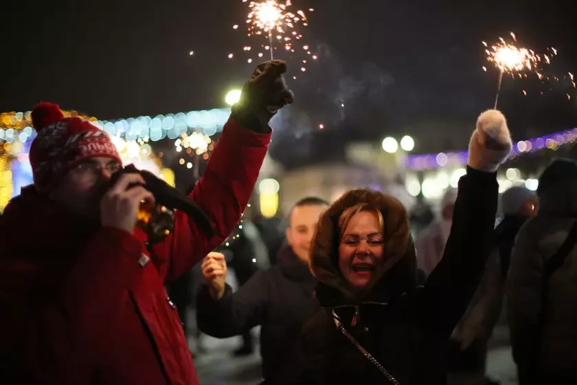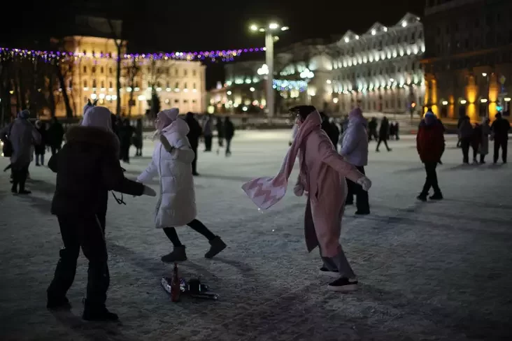 Paśla taho, jak prabiła 12 hadzin i ŭ Biełarusi nastupiŭ 2026 hod, mnohija biełarusy, niahledziačy na chałodnaje nadvorje, vyjšli śviatkavać Novy hod na vulicy haradoŭ. Tak heta vyhladaje ŭ Minsku.