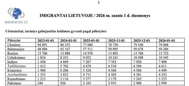 Na 1 studzienia 2025 hoda ŭ Litvie naličvałasia 57 511 hramadzian Biełarusi z DNŽ usich typaŭ. Za hod ich kolkaść skaraciłasia na 7 225 čałaviek. Na 1 studzienia 2026 hoda ŭ Litvie zastajecca 50 286 biełarusaŭ z DNŽ usich typaŭ.
